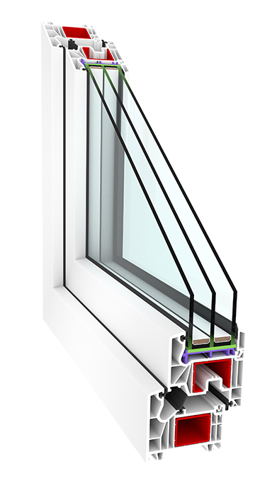 Šesťkomorové profily s inštalačnou hĺbkou 80 mm a trojitým zasklením 48 mm s teplým rámom zaisťujú vynikajúcu tepelnú izoláciu okna pri 0,78 W / m2K